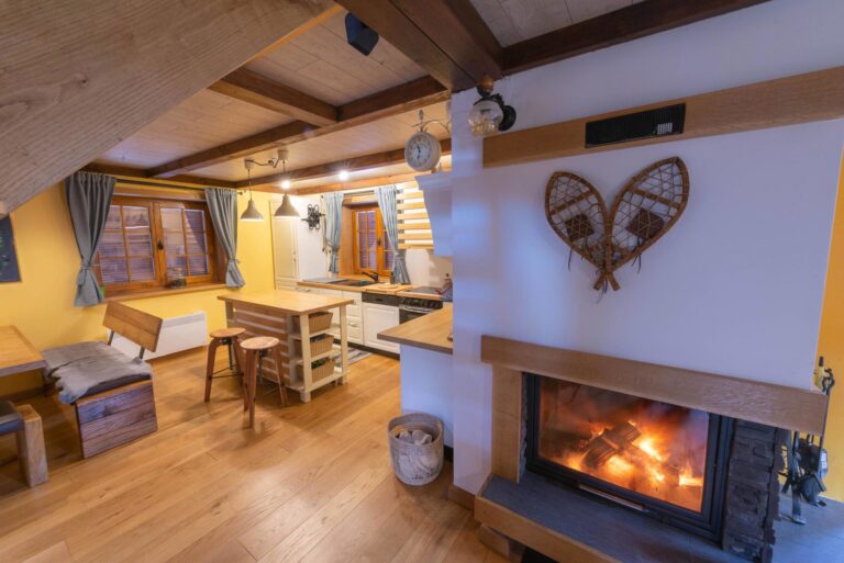 Die Beheizung erfolgt über einen Holzkamin sowie elektrische Heizkörper.